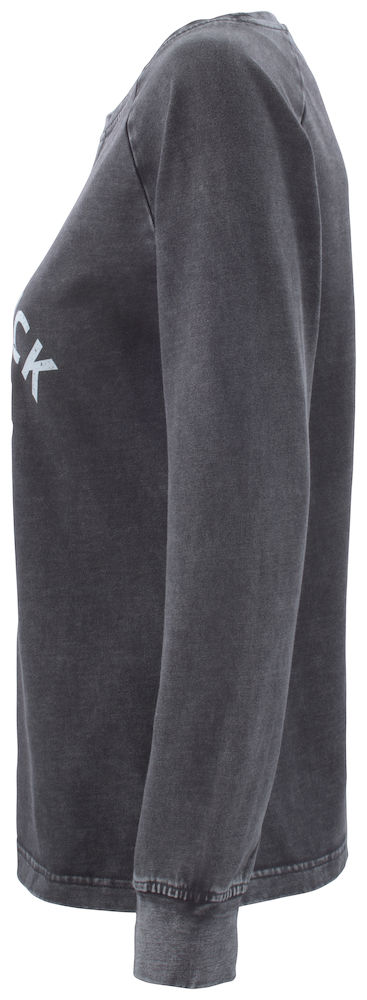 Sweter z nadrukowaną grafiką z przodu. Kolor dżinsowy czarny, dostępny również bez nadruku. Wykończenie szyte potrójną igłą, ściągacz na dole i na rękawie. Damska wersja posiada rozcięcie na dole swetra.